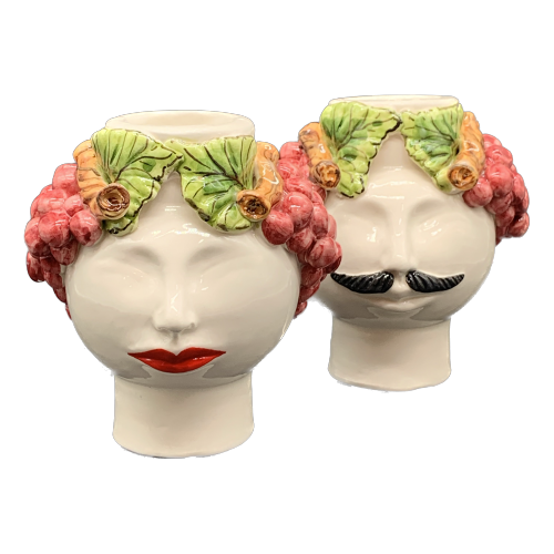 Artisanal product "Teste di Moro Minimal" in ceramic, entirely handmade by Elisabetta Castagnetta of Ceramicando. A perfect combination of Sicilian tradition and minimalist elegance. Decorated with applications and designs typical of Sicilian culture, each piece is unique and perfect for adding a touch of style to any environment. Packaged with care and passion for details.